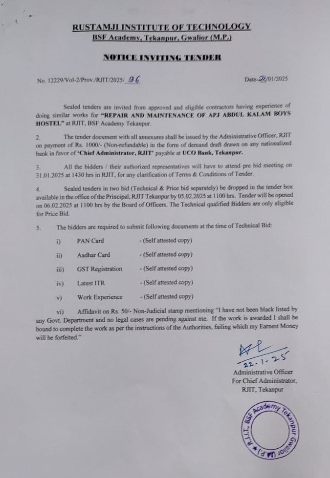 Tender for Repair and Maintenance of APJ Abdul Kalam Boys Hostel
