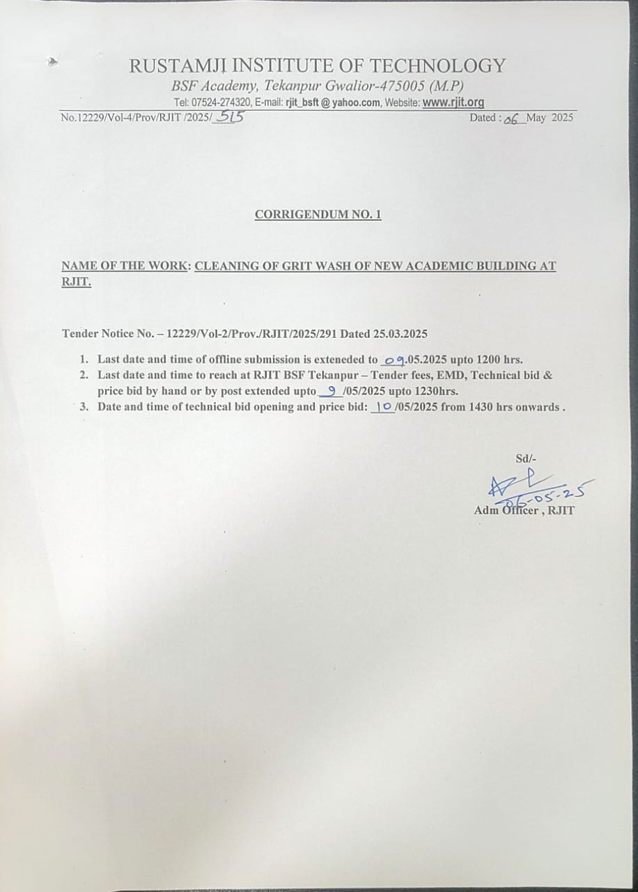 Corrigendum: Cleaning of grit wash of new academic buildig at RJIT