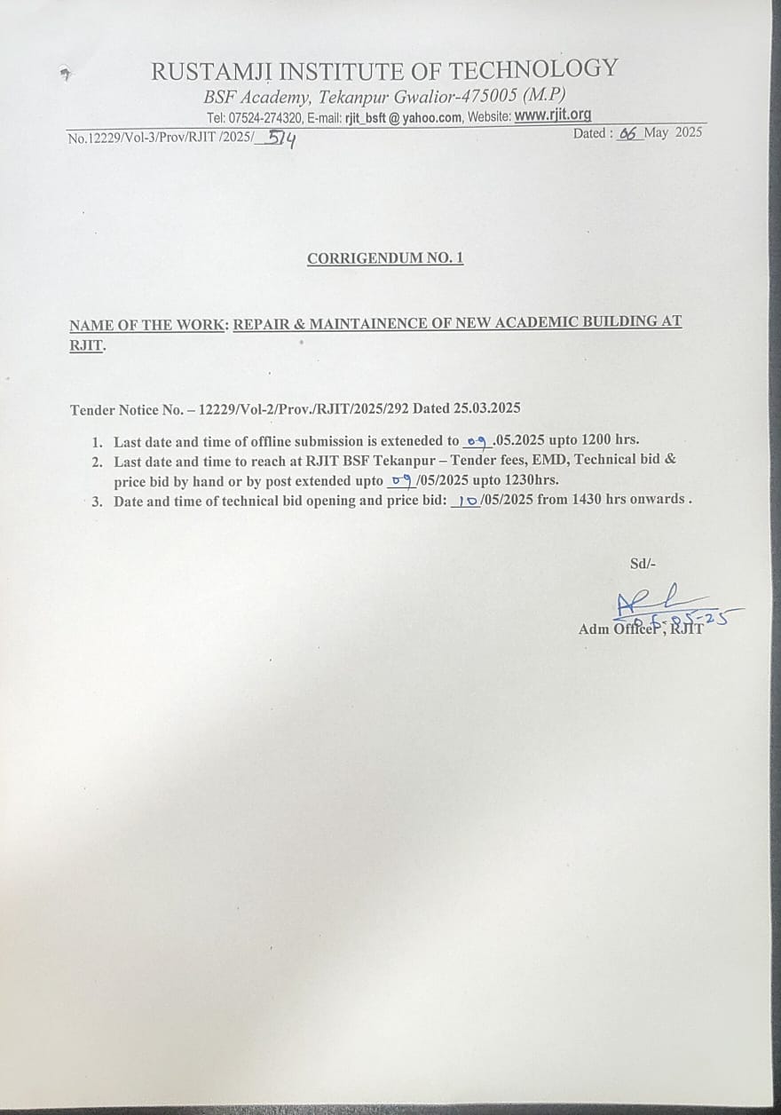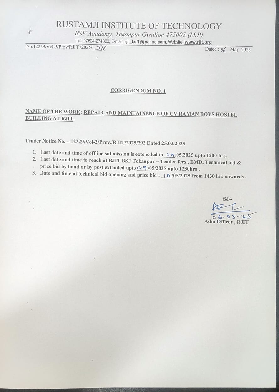 Corrigendum: Repair and Maintenance of CV Raman Boys Hostel Building at RJIT